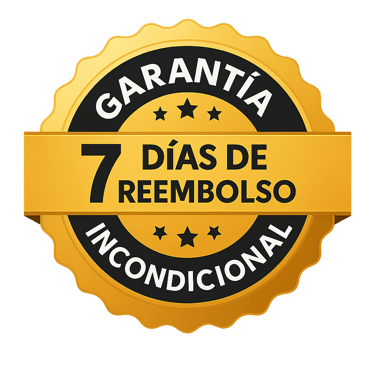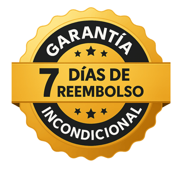Tienes garantía total de 7 días. Si el curso no es lo que esperabas, pides tu reembolso y se te devuelve el 100%, sin preguntas.
